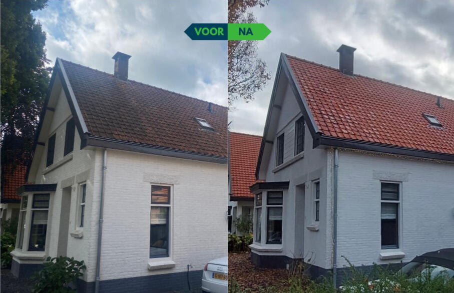 Met de Softwash-methode verwijder ik vuil, algen en mos op een veilige, milieuvriendelijke manier – zonder het risico van schade door hogedruk. Of het nu gaat om dakpannen, gevels, terrassen of hout – ik zorg voor een grondige reiniging die veel langer schoon blijft.